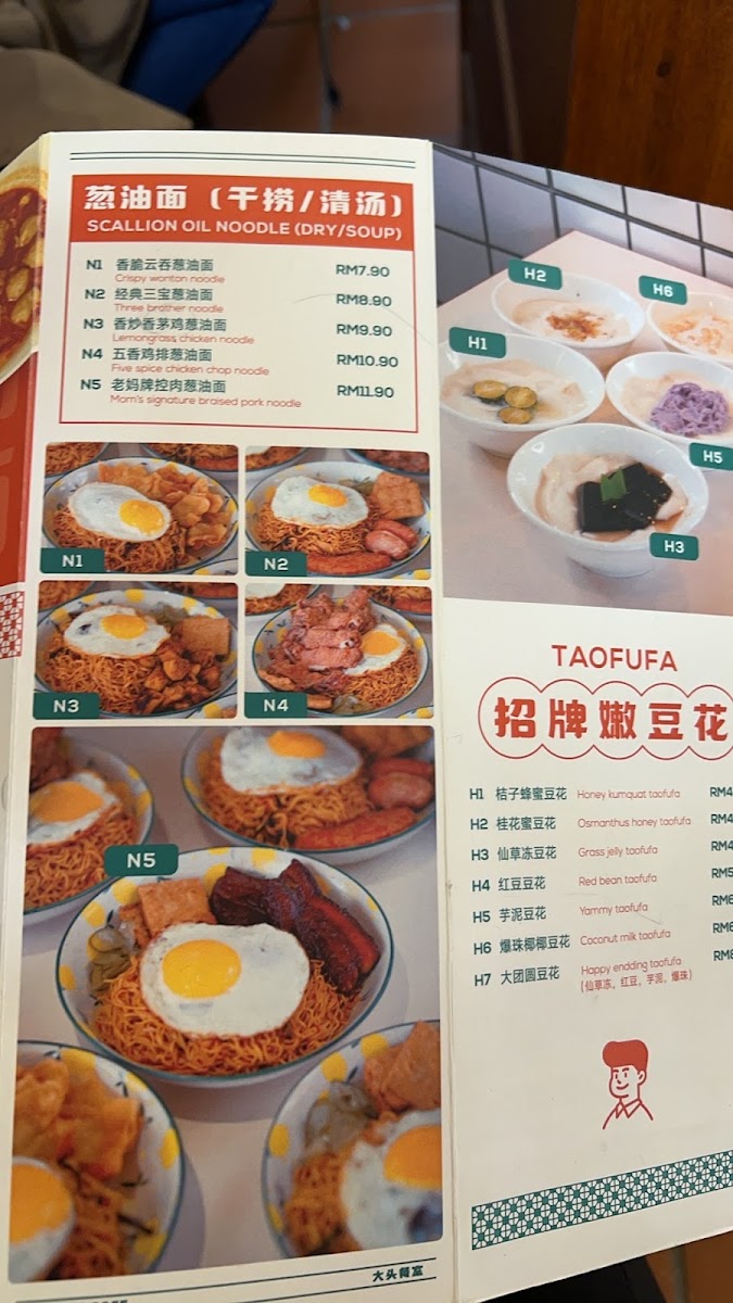 Food options include noodle soups such as tom yum and five-spice chicken noodles, braised pork rice sets, and lemongrass chicken sets. There are also steamed tofu desserts with various toppings and a variety of sweet and savory breads.